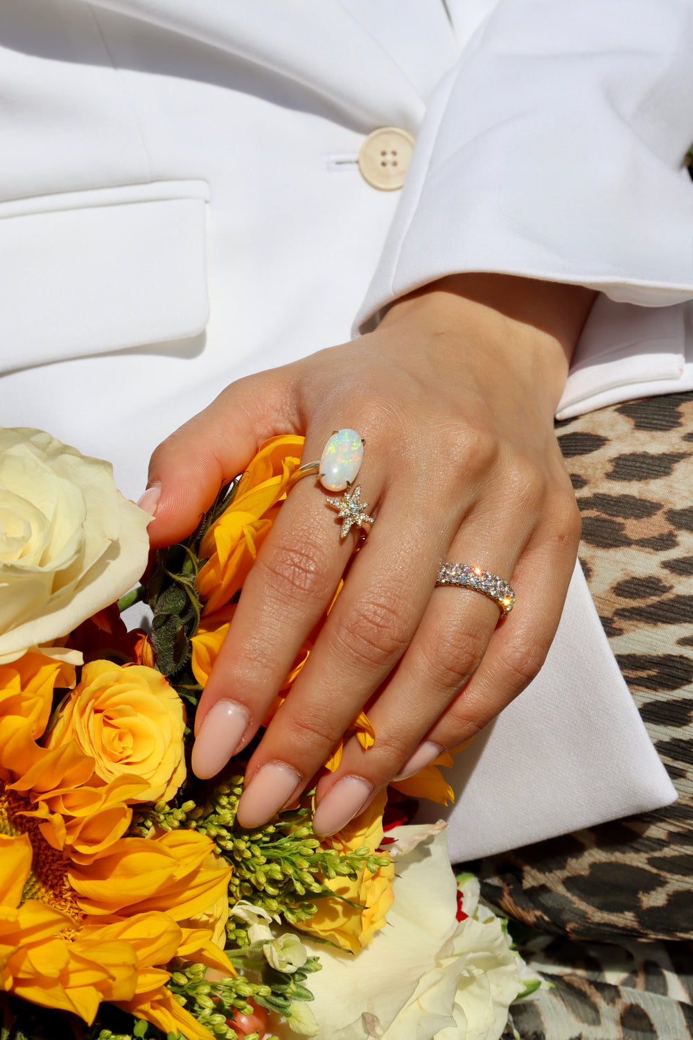 Butterfly Australian Oval Opal Ring in 14K Yellow Gold