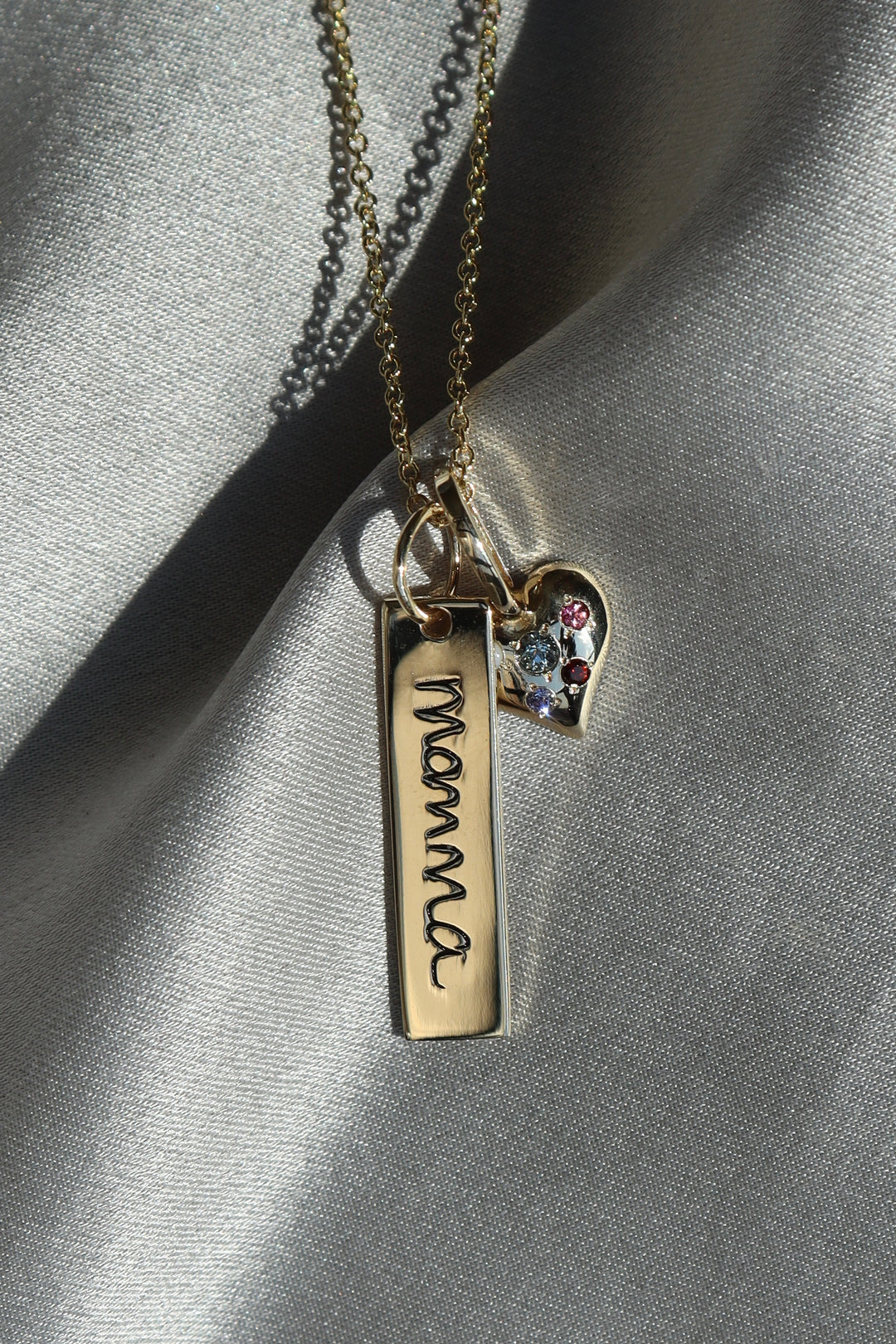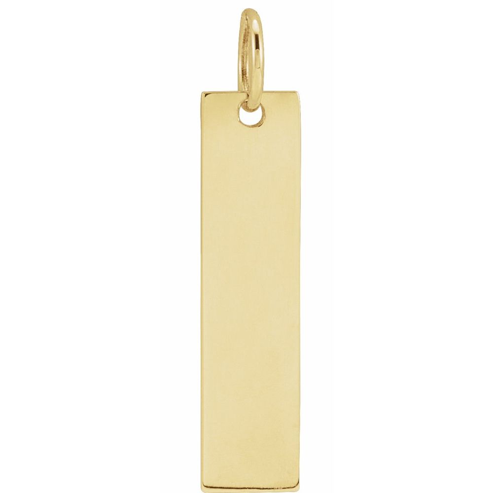 Charming AND fun! This engravable dainty Vertical Bar Charm is a style that’s perfect if you want that touch of personalization to your layer of necklaces. This bar charm can be engraved with text or even your personal handwriting. This is the perfect charm to pair with other layering charms for easy, everyday style. The chain is not included.