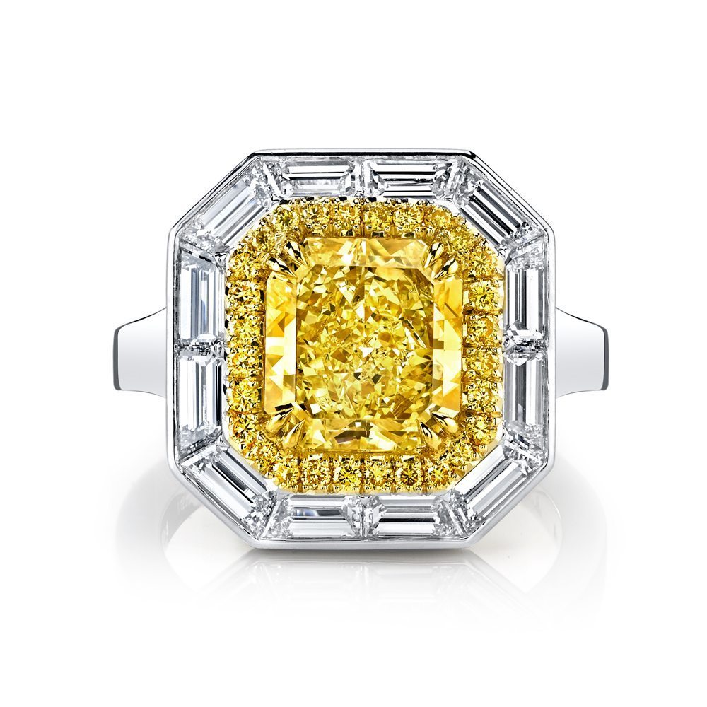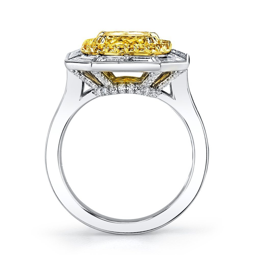 3.02ct Radiant Natural Fancy Yellow Diamond & Baguette Halo Ring