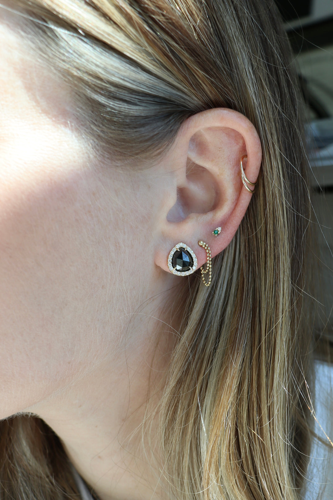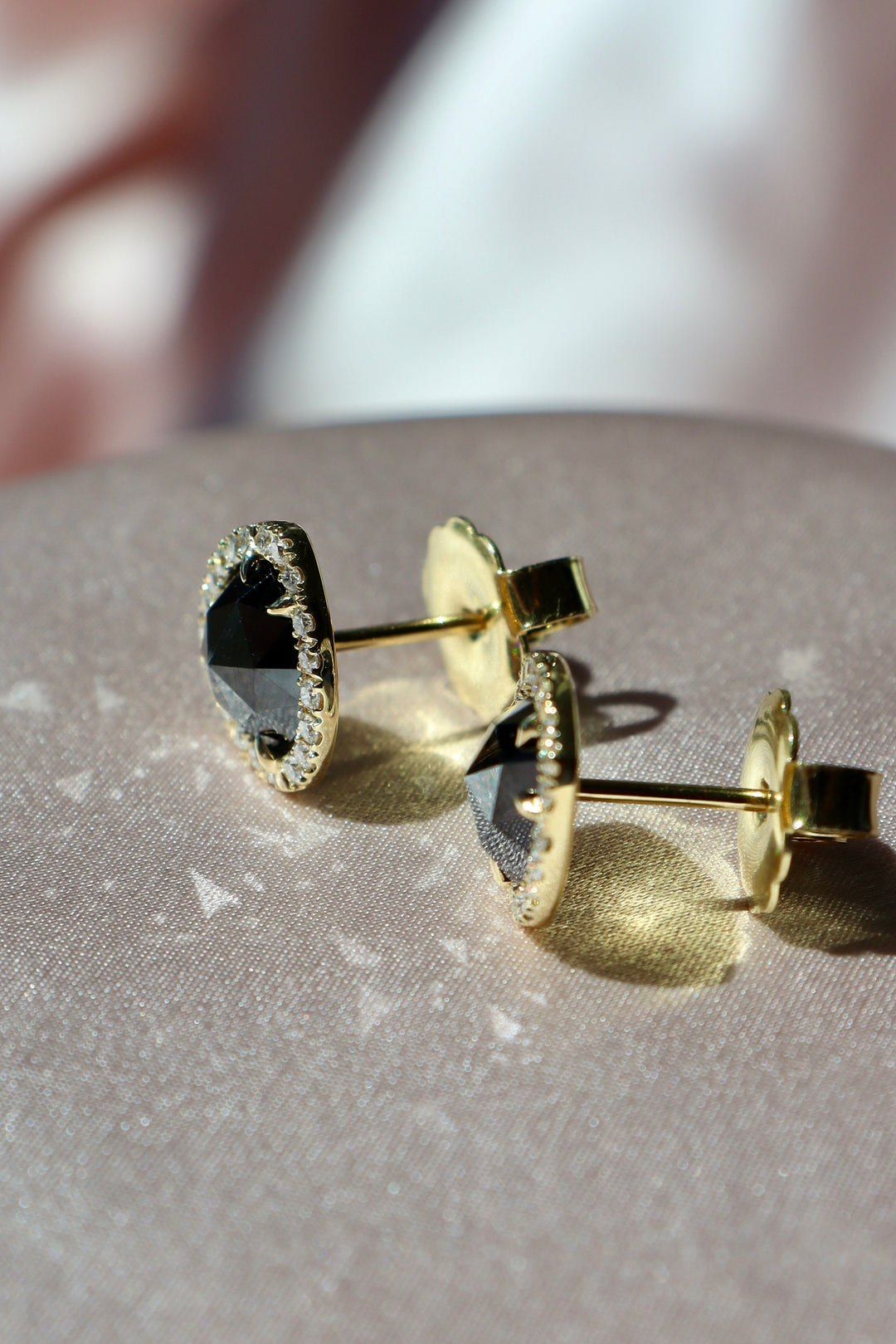 Take your studs up a notch with these 3.06ctw Rose Cut Black Diamond Studs from Nicole Mera’s Nikki by Nicole Mera Collection. These 18K Yellow Gold studs hold 0.35ct Natural Round Brilliant Diamonds in the halos for that extra touch of sparkle!
