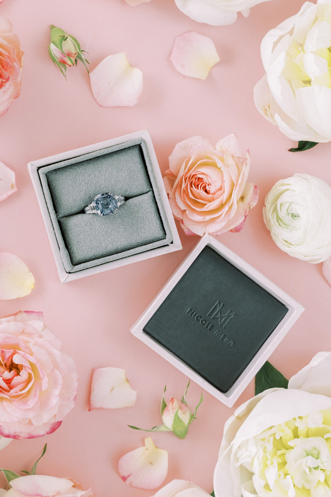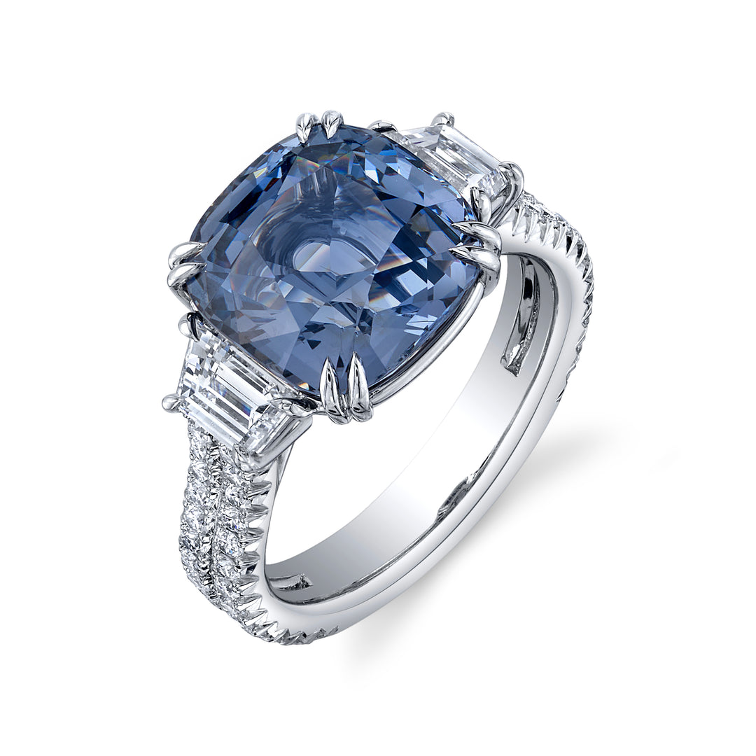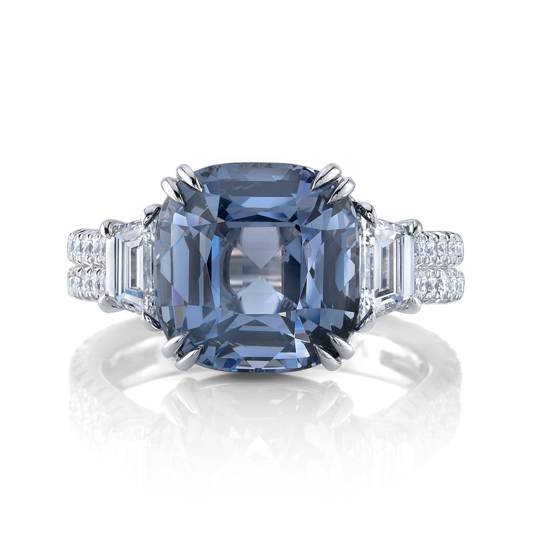 6.38ct Cushion Blue-Grey Spinel & Diamond Ring