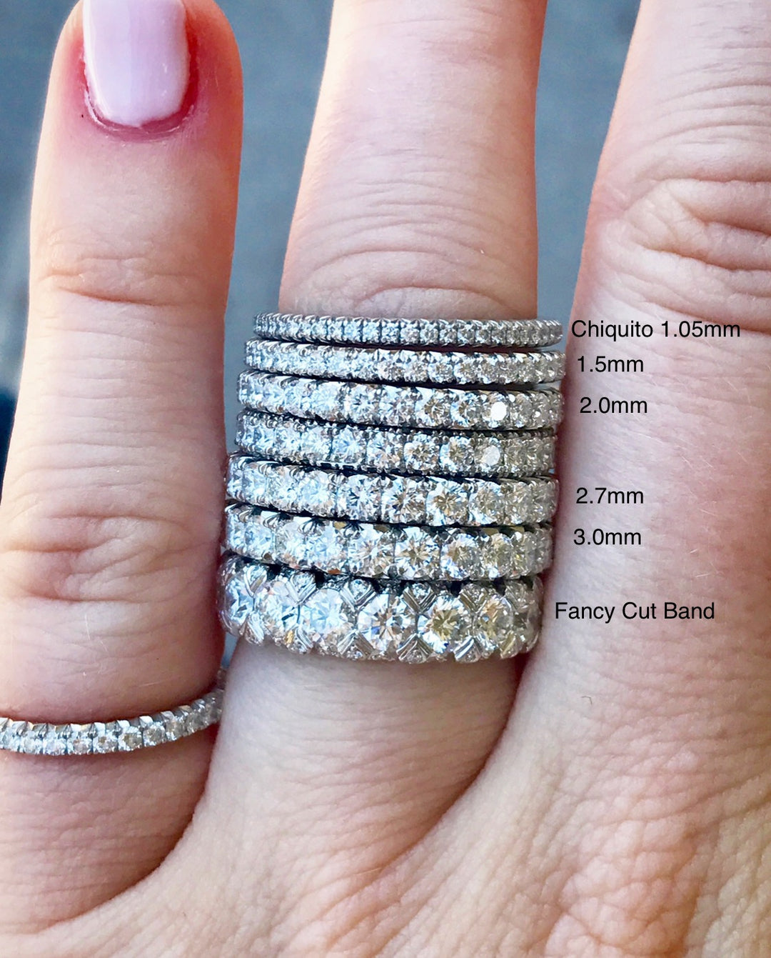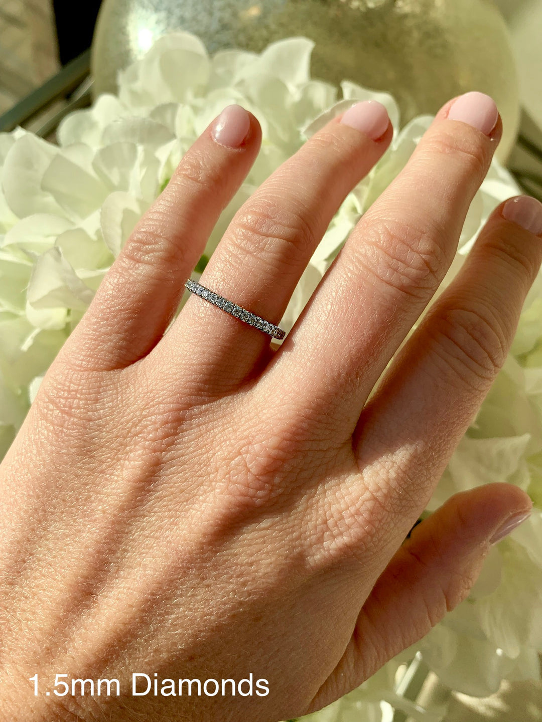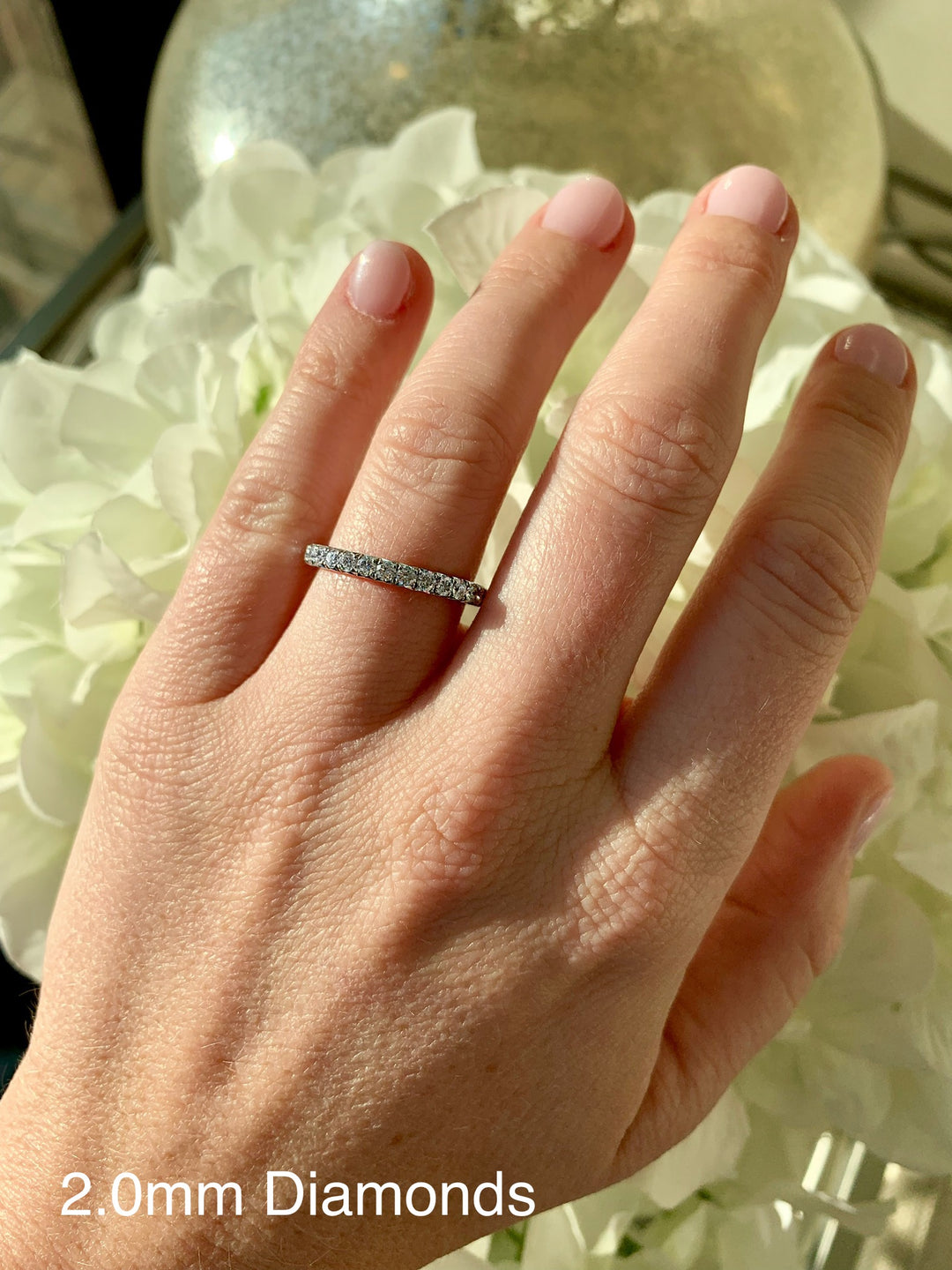 This classic diamond eternity band is a made-to-order custom design. This band can be hand fabricated using any diamond size or colored stone size. Eternity Bands are available in Platinum and any 18K Gold metal.