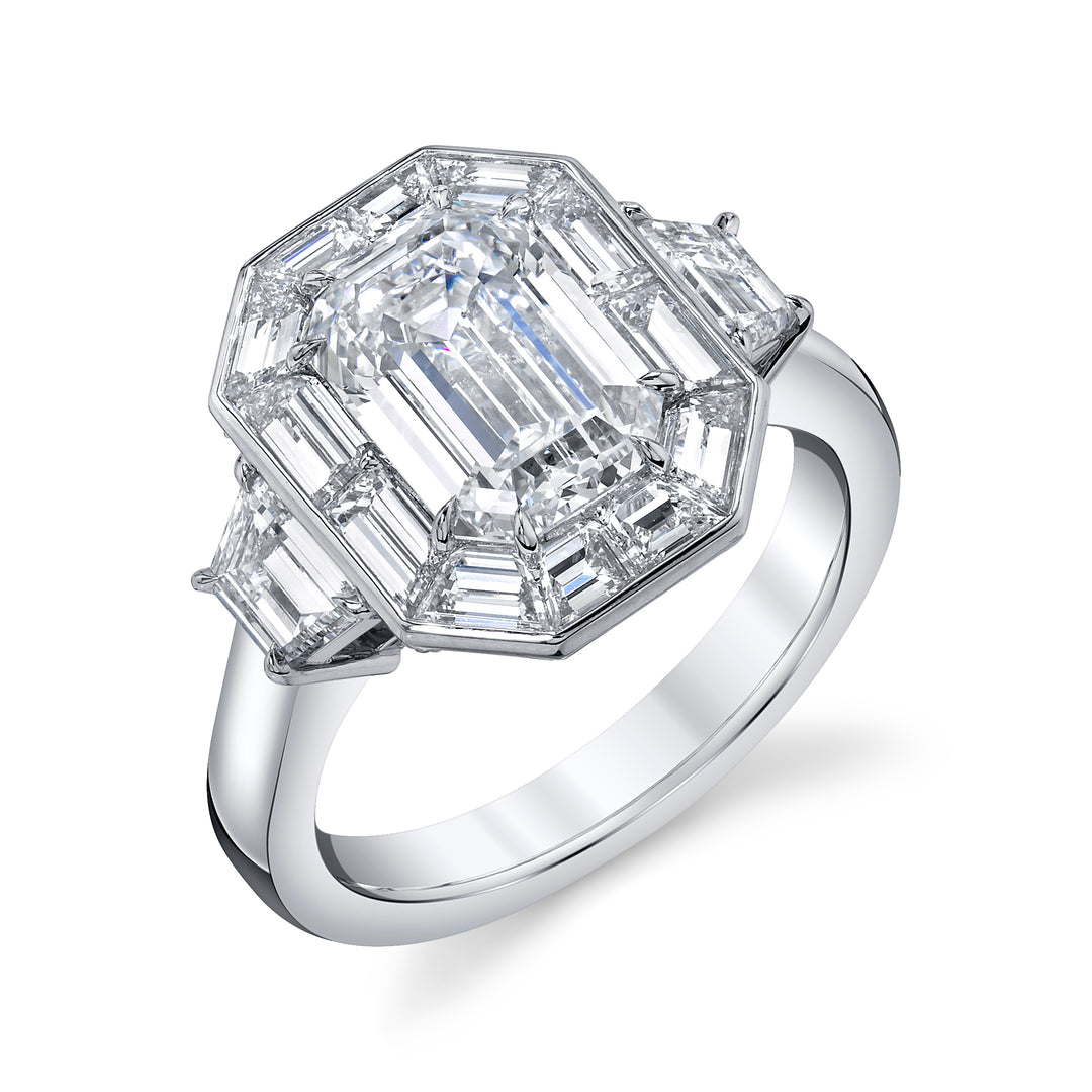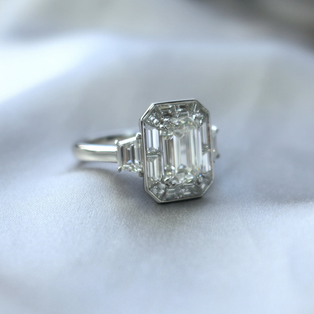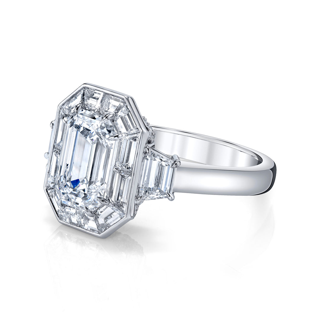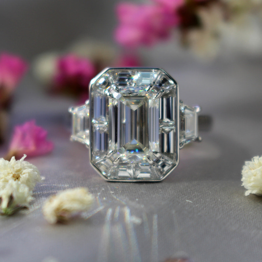 Emerald Cut & Baguette Three-Stone Diamond Ring