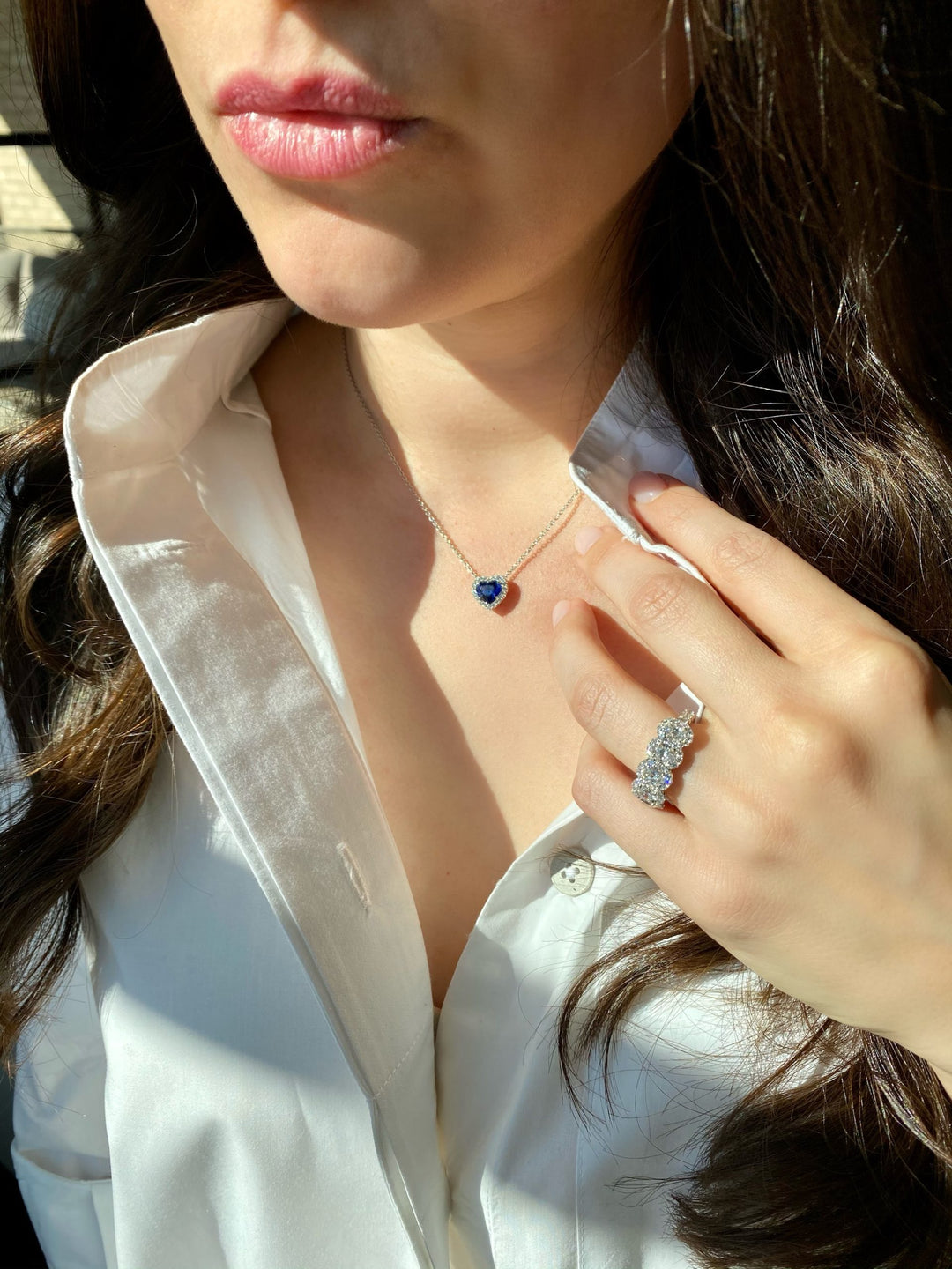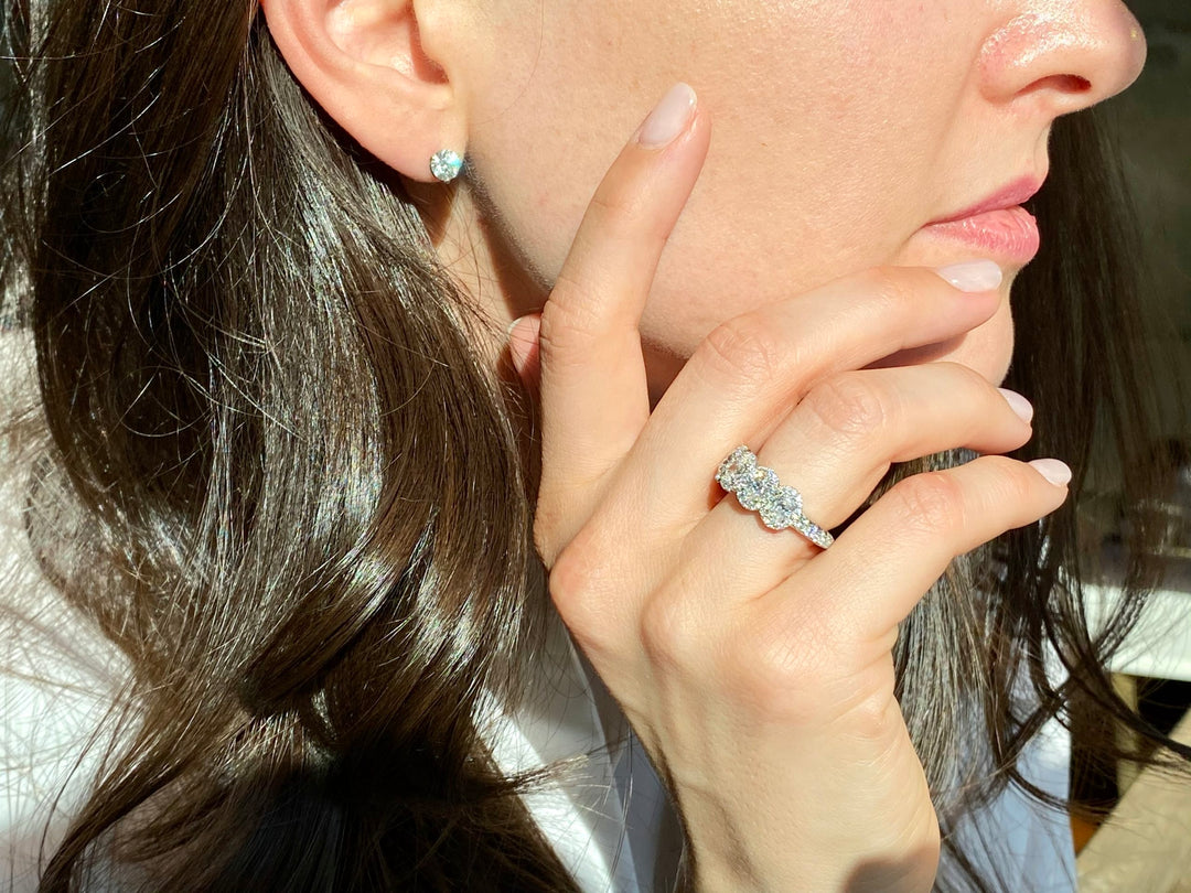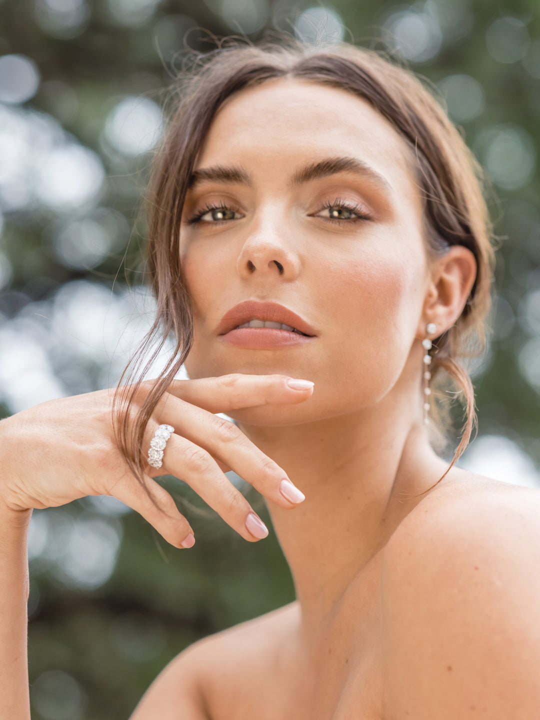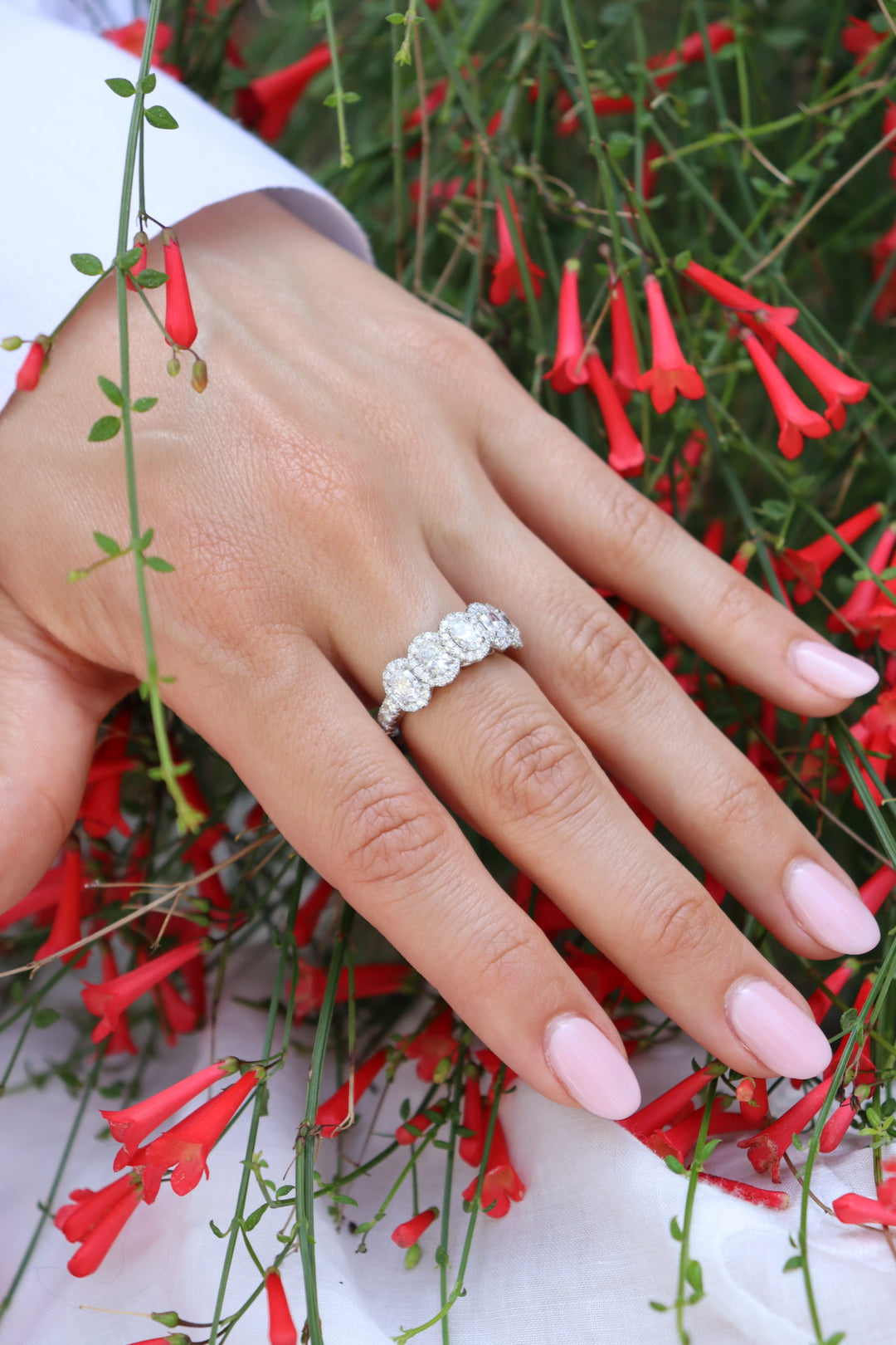 From our High Bridal Collection, this hand fabricated Platinum band design features approximately 1.50ctw Oval White Diamonds at the center surrounded by petite Round Brilliant Diamond halos and Round Brilliant Diamonds down the shank. Order this Platinum band below by selecting your finger size. To customize this band in a different metal or diamond shape, please email info@nicolemera.com