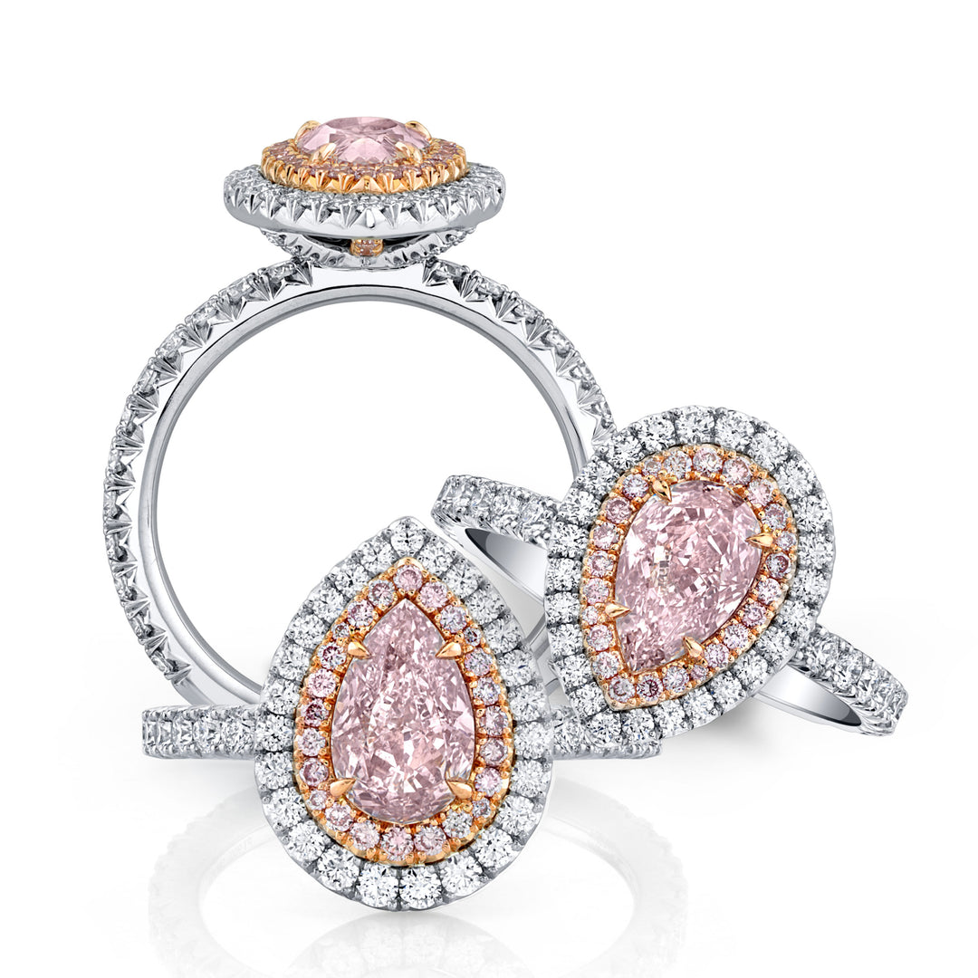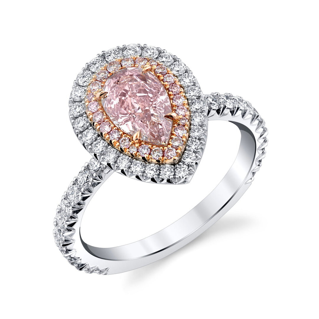 Pear Shape Fancy Pink Diamond Double Halo Ring