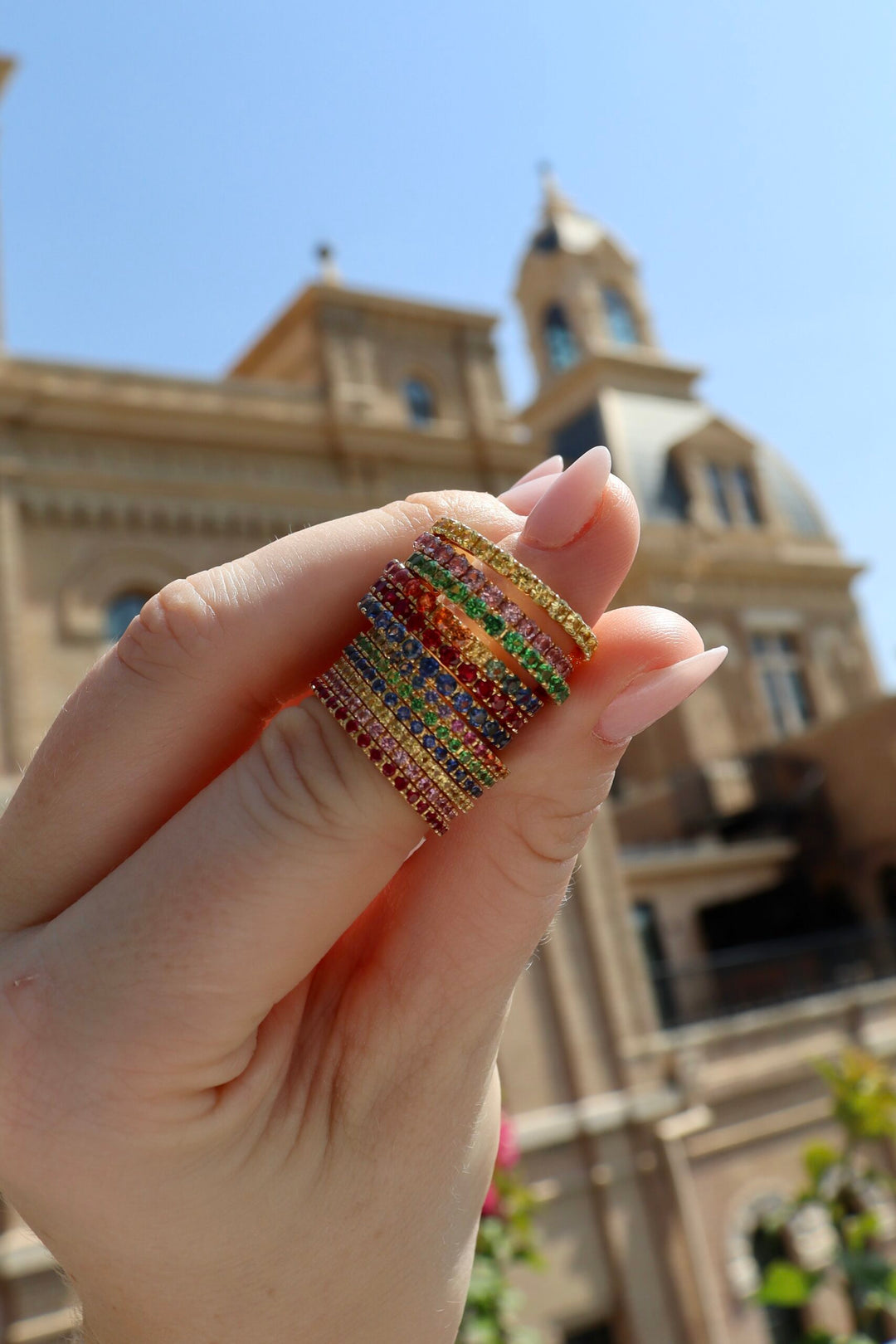 This fun and bright petite Light Pink Sapphire eternity band is a made-to-order custom design. This band can be hand fabricated in 18K Yellow, Rose or White Gold. If you are looking to stack this with a another band with a little more pop of color, try our “Over the Rainbow” Petite Sapphire Eternity Band.
